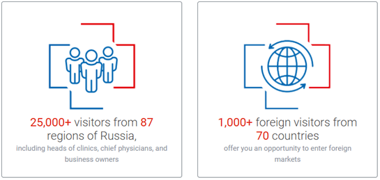 俄罗斯联邦工商会的大力支持,是俄罗斯境内规格较高、规模较大、影响力较强的专业医疗展览会,辐射欧洲东部及中亚地区,为俄罗斯以及