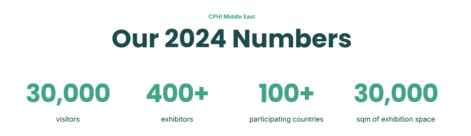 首届CPHI中东展于2018年在阿联酋阿布扎比举办。受疫情影响,展会一度暂停。沉寂近三年,终于在万众瞩目中重回展览舞台。2024年,CPHI中东展在沙特阿拉伯落户,成果可人。展出面积 30000 多平方米,参展企业 400 余家,来自 100多个国家。参展企业有:沙特药监局、沙特国家卫生研究所、沙特工业和矿产资源部、Tabuk、Hikma、Julphar、Sudair、Hetero、Unicare、SPIMACO 等,展会续订率高达 80%。专业观众30000余人,来自100多个国家,包括沙特阿拉伯、阿联酋、印度、巴基斯坦、伊拉克、中国、约旦、伊朗、埃及、英国等。中东及非洲地区的参展企业占62%。其中74%具有采购决策权。展会续订率高达80%。通过参加CPHI中东展,您可与中东及非洲地区的医药企业和代理商建立商业联系,参与全球供应链,通过会议演讲了解到新技术及市场信息。